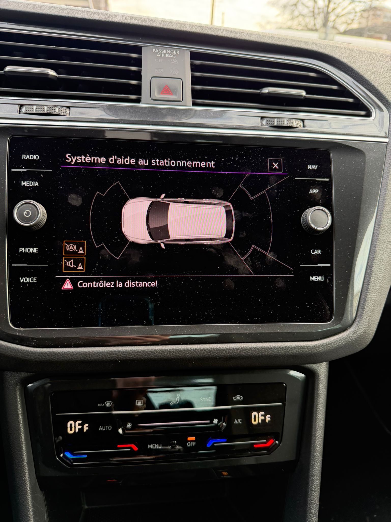 radar de recul à l'avant du véhicule